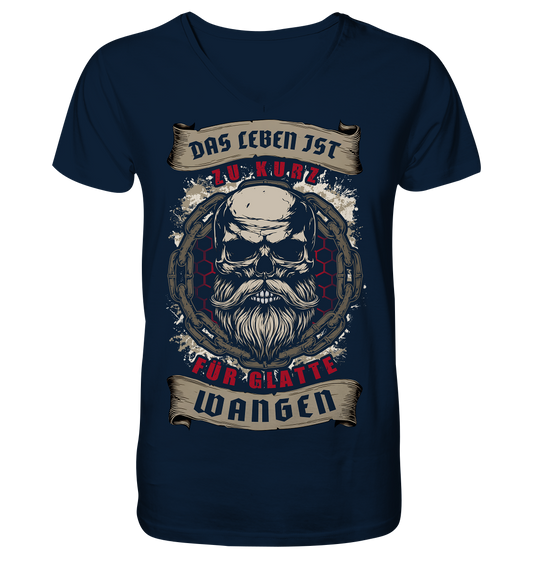 Das Leben Ist Zu Kurz Für Glatte Wangen - V-Neck Shirt